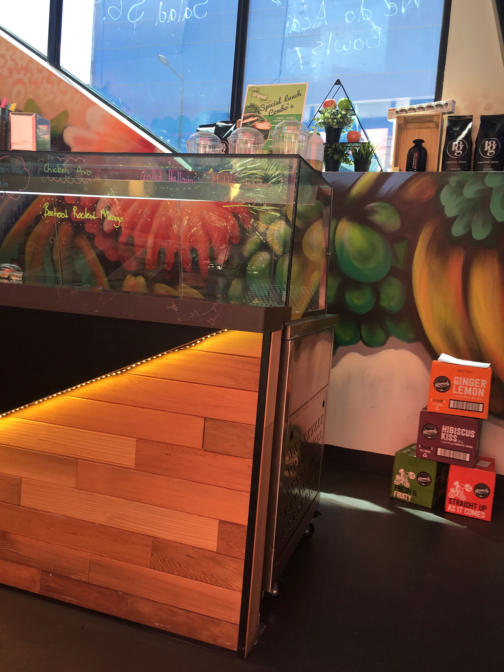 A powerful brand combined with a modern juice bar design located in the Dandenong square.