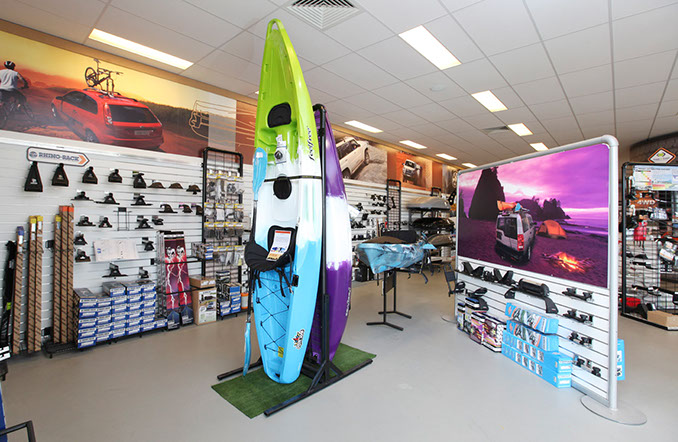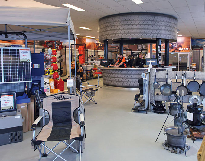 A theme of action 4wd images surround the retail store with a theatre room for customers to watch action 4wd movies whilst waiting for their vehicle to be fitted out with accessories.