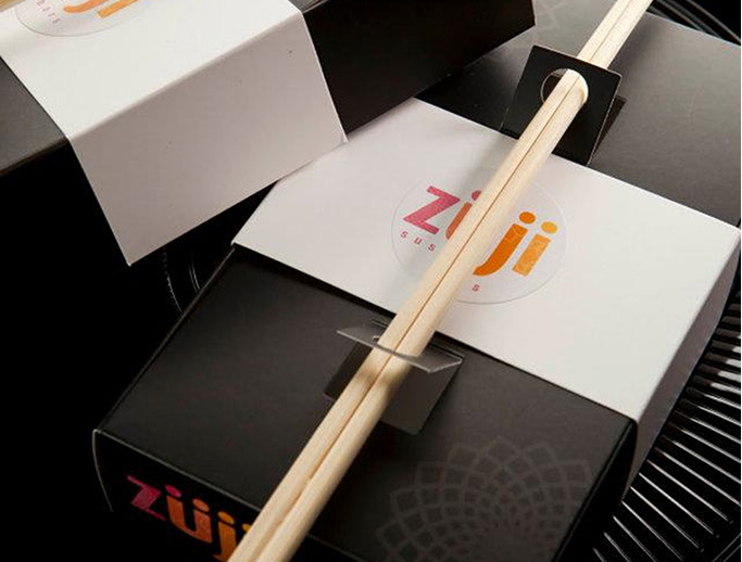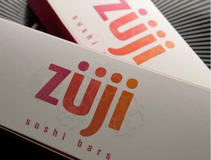 The Zuji logo and brand design incorporated the idea of geaometrical patterns to simulate Chinese paper cuts. This was how we were able to create a relationship with the oriental roots of the sushi product offering.