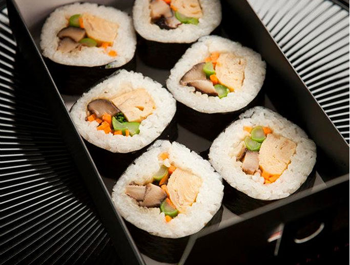 Zuji wanted to create a unique image for a sushi bar kiosk. The sushi rolls are unique themselves with a cone shape